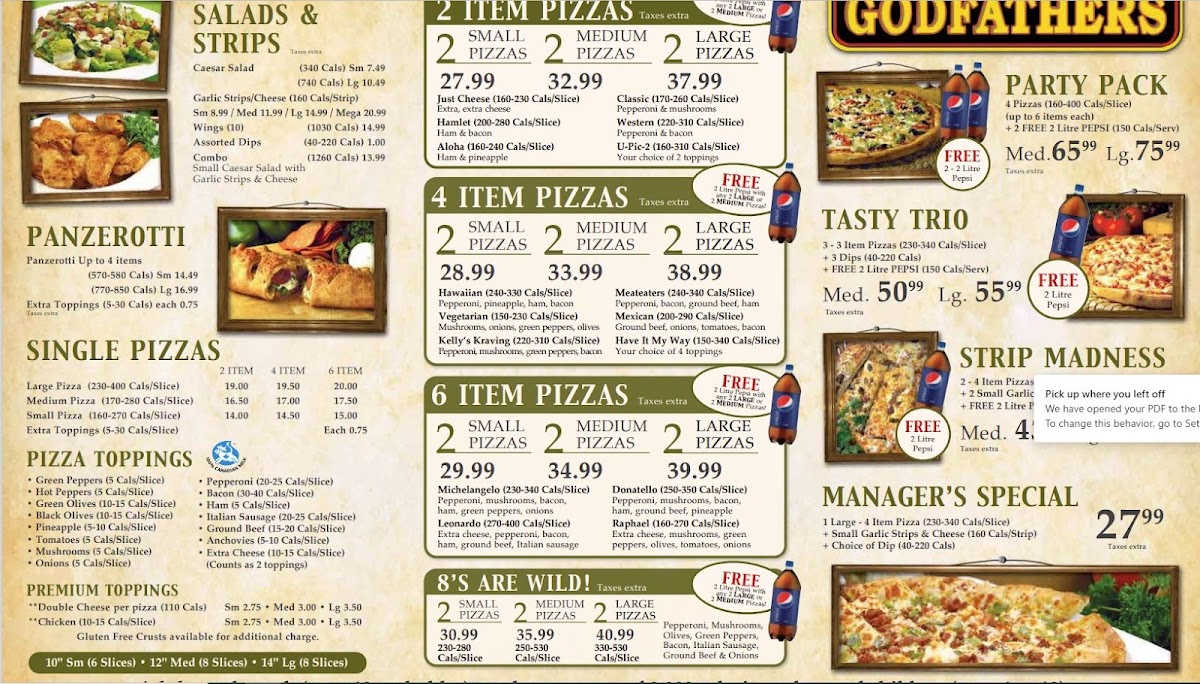 At Godfathers Pizza in Delhi, Ontario, a delightful culinary experience awaits each visitor. The menu is a treasure trove for pizza lovers, featuring an array of options that cater to diverse tastes. Signature pizzas like the Aloha and Meateaters stand out, promising a burst of flavor with every bite. For those seeking lighter fare, their Caesar Salad and delicious Garlic Strips provide perfect complements.